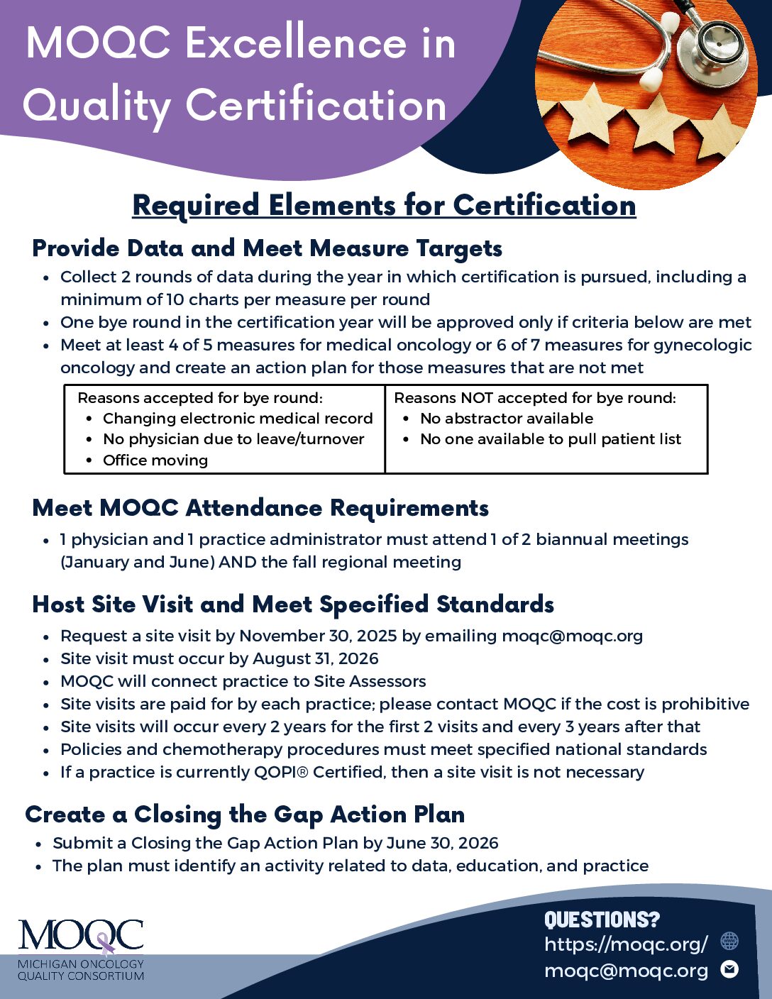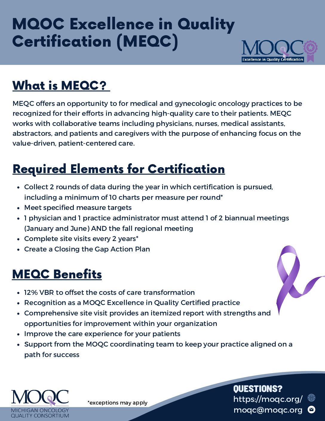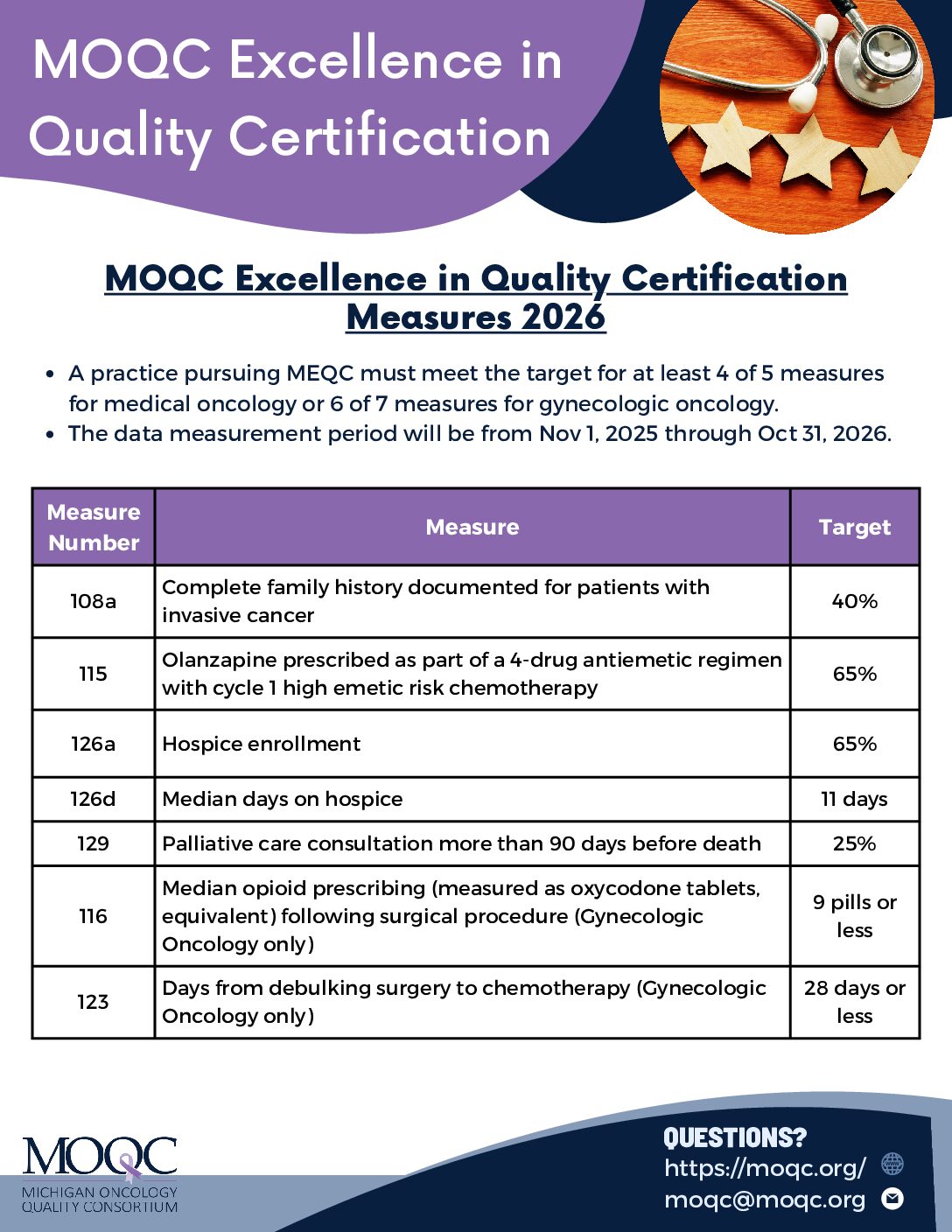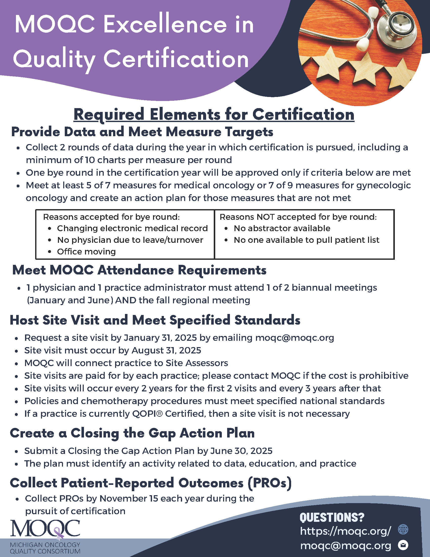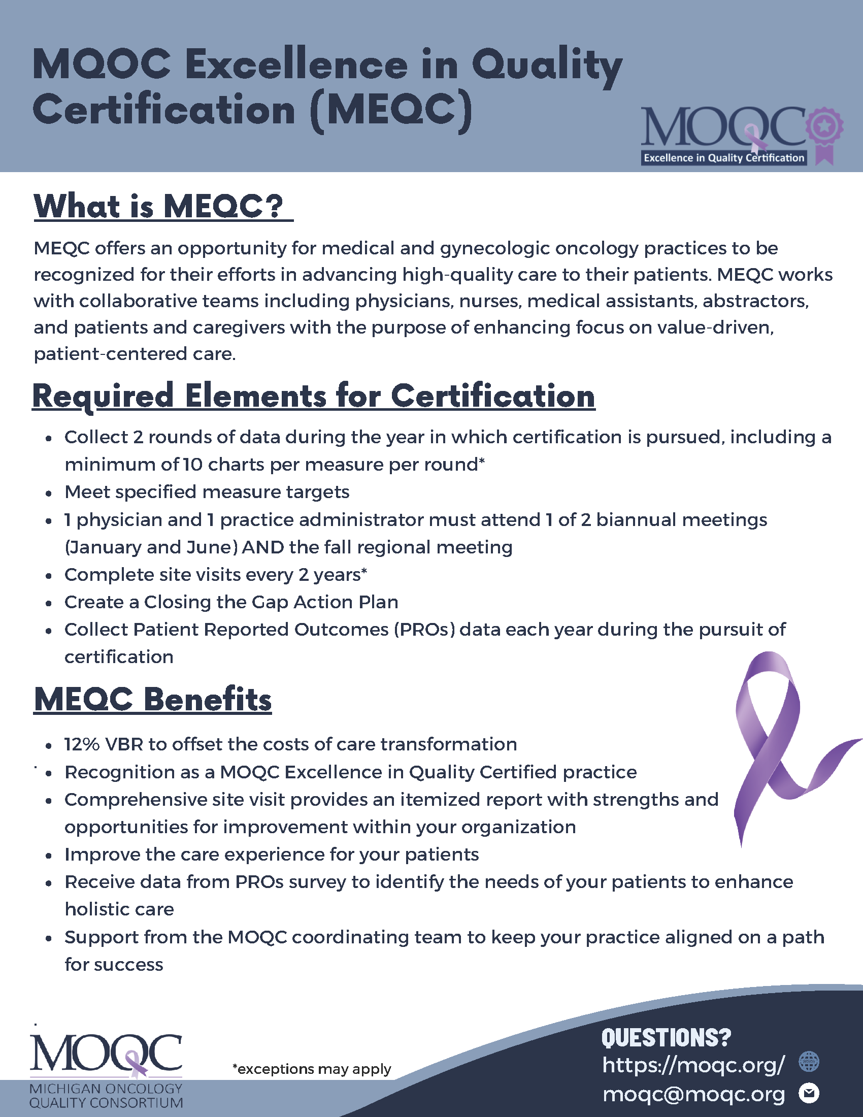 MOQC Excellence in Quality Certification provides medical and gynecologic oncology practices the opportunity to be recognized for the high-quality care they provide patients.