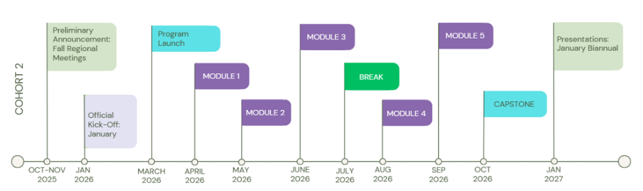 Cohort 2 will launch in March 2026, with applications opening in January. This next group will include APPs from MOQC practices and clinicians from tribal communities and federally qualified health centers (FQHCs). Please start thinking about who might want to participate in this program! If you can help us with outreach efforts to tribal clinics and FQHCs, please email nsimon@moqc.org. The proposed timeline for Cohort 2 is below: