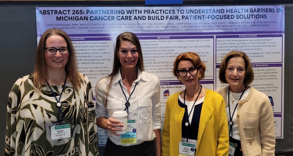 • Financial Navigation: Partnering with Practices to Understand Health Barriers in Michigan Cancer Care and Build Fair, Patient-Focused Solutions: In collaboration with the Patient Advocate Foundation and Gilead Sciences, MOQC shared findings from its work to better understand and address non-medical challenges that affect access to cancer treatment. The project focused on identifying existing processes for non-medical needs screening.